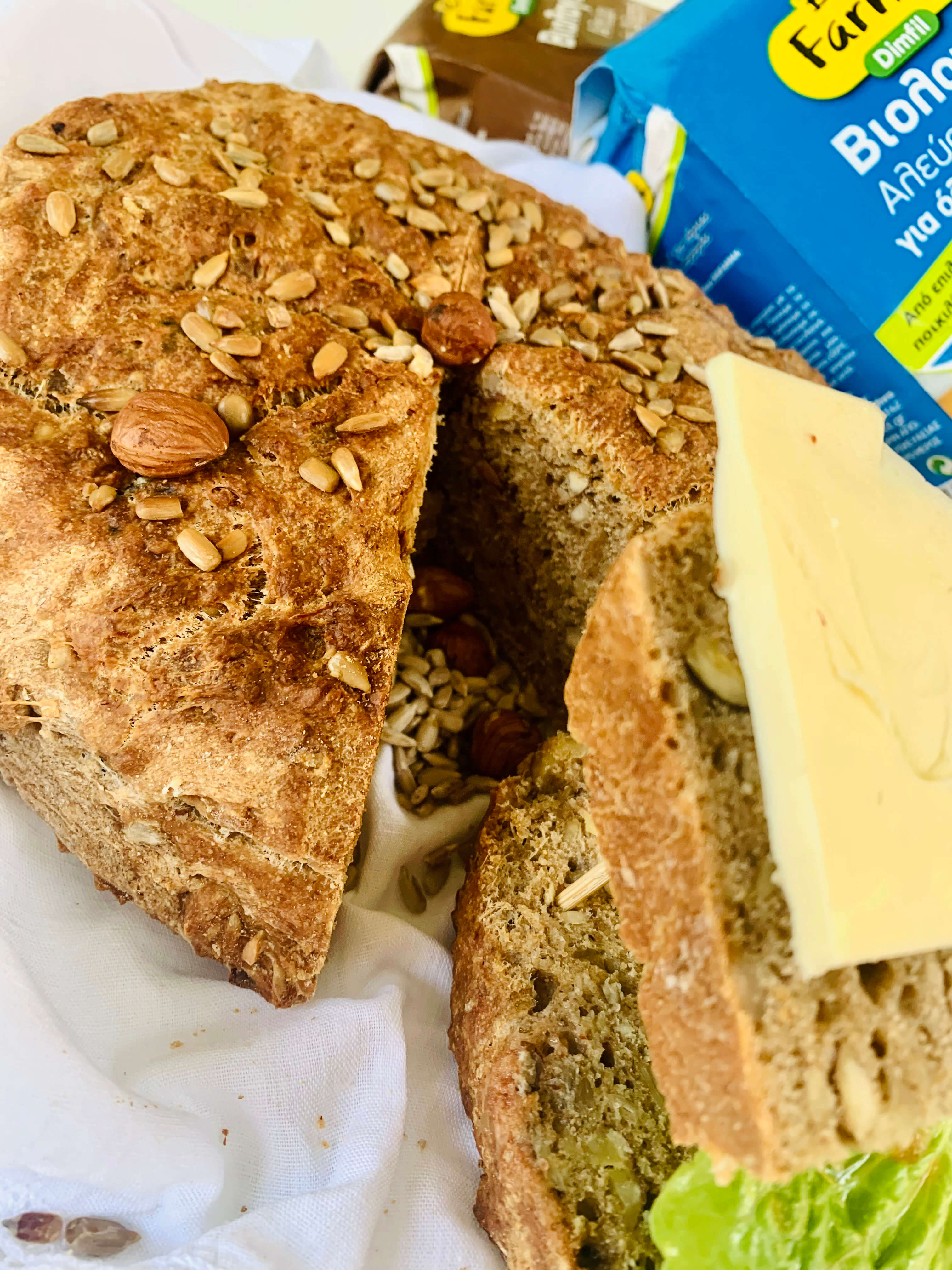 Published Απρίλιος 8, 2022 at 3024×4032 in Ψωμί με αλεύρι ολικής άλεσης, φουντούκια και ηλιόσπορους.
